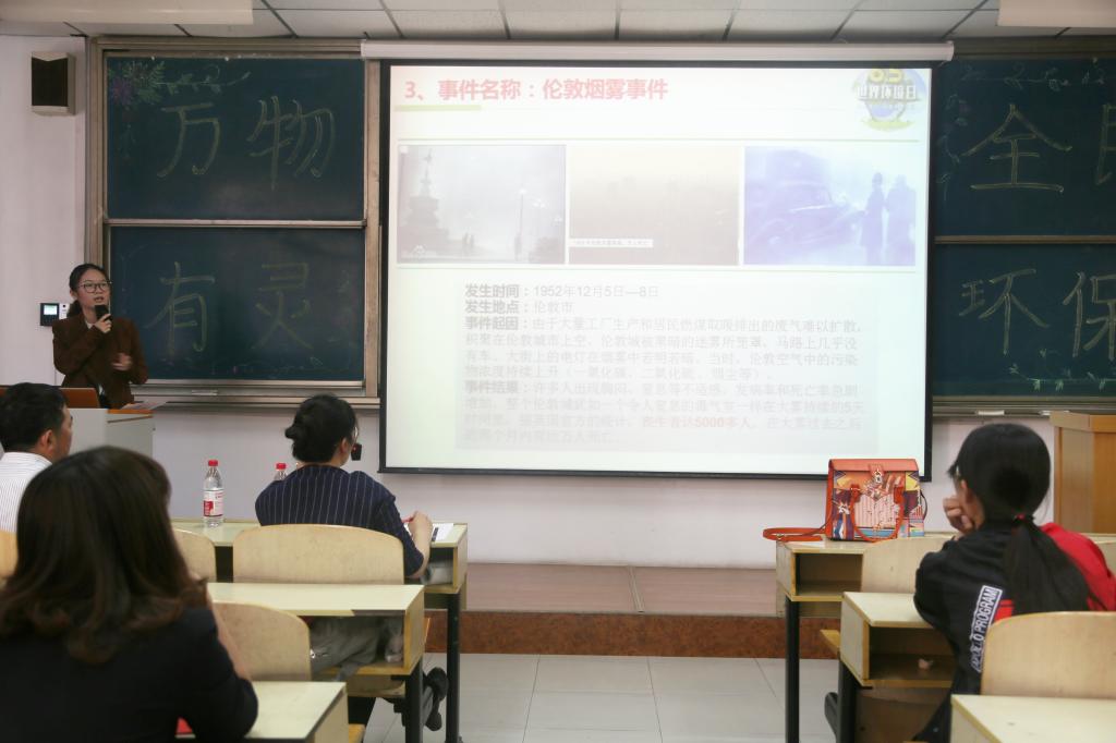 三位作报告的老师毕业于国内知名大学,从事过多项环保科研项目,拥有丰富的环保部门工作经验。他们分别是:毕业于中国海洋大学的刘叶老师,她的报告主题是世界环境公害事件,由历史上震惊全球的公害事件来唤醒大家的环保意识,警示后人保护环境人人有责;第二位老师是毕业于吉林大学张海涛老师,他报告的题目是环境修复技术,为大家介绍常用的三大类环境修复技术(物理法、化学法、生物法);第三位是毕业于北京工业大学的王宝磊老师,他报告的题目是固体废弃物处理与处置,王老师结合东营每年产生固废的最新现状,谈固废的危害及最经济有效的处理处置技术。