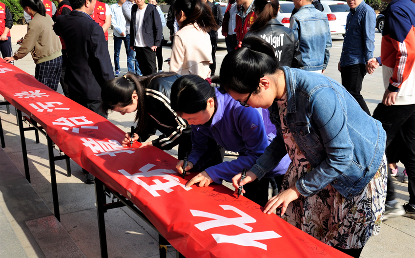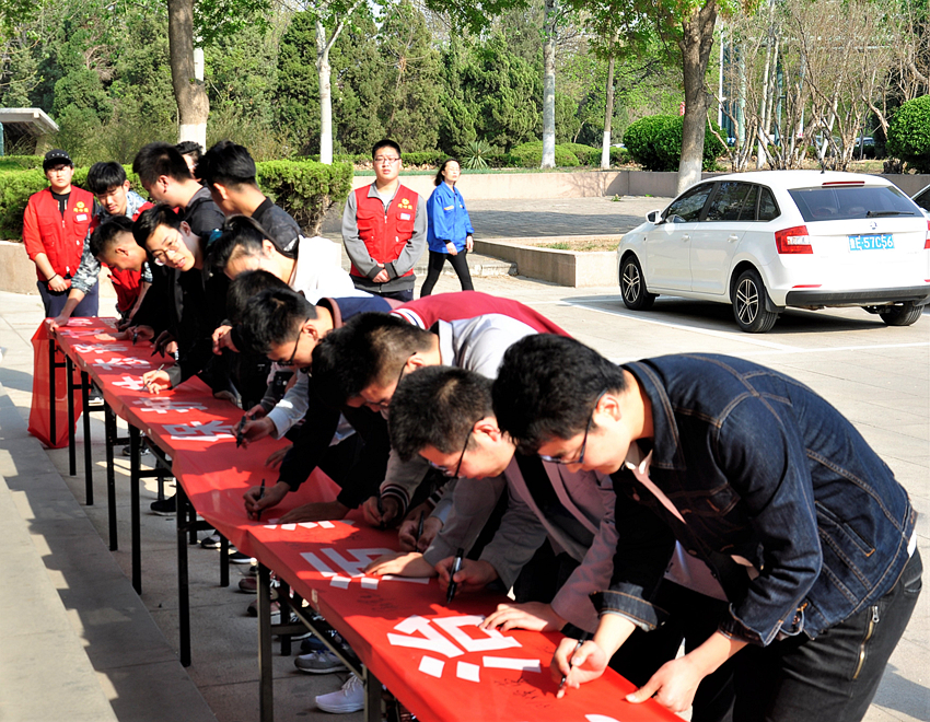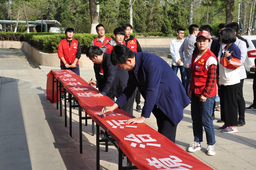 活动前期通过制作关于环保的海报、展板、借助我院公众号推送等方式起到了良好的宣传效果。签字仪式活动中,现场气氛十分热烈,我院的领导老师及同学们纷纷站在以“净化环境治污染,保护生态讲文明”为主题的横幅前,郑重地签下了自己的姓名,一起做出了爱护校园环境的庄重承诺,大家用自己的实际行动响应号召,提高自身爱护校园环境的意识。活动最后,大家与横幅合影留念,坚定了坚持环保的信念。