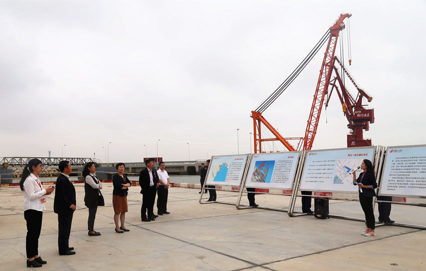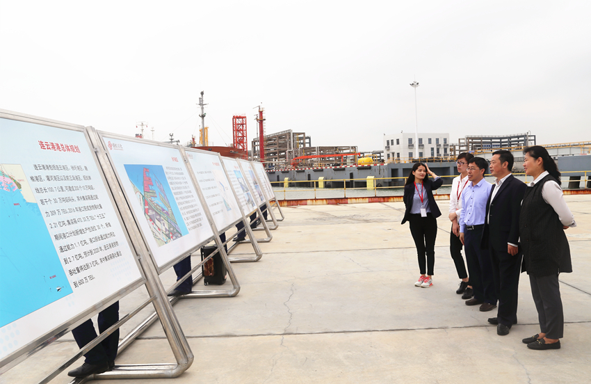 王晓勇一行五人首先实地考察了盛虹石化(连云港)港口储运有限公司的荣泰码头,讲解员介绍了公司炼化一体化罐区、炼化一体化码头、石化液体化工仓储等特色项目。接着,王晓勇一行人来到盛虹石化的全资子公司江苏斯尔邦石化有限公司,参观了公司中心控制室、空风空压站,并详细询问了主要装置的安全环保性、职工的文化生活环境等。