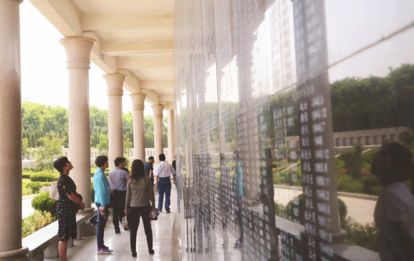 党员们首先走过全长162米、双面刻有渤海区共55308名烈士英名的烈士碑廊,在石碑前久久驻足凝望,心中满是对革命先烈的敬仰和钦佩。接着,党员们在讲解员的带领下步入纪念馆,通过视频、图片、文献文物,辅以历史场景还原以及艺术雕塑等,形象直观地了解到当年渤海区人民为胜利所进行的艰苦卓绝的斗争。率领一方百姓奋起抗日壮烈牺牲的“一马三司令”、为掩护革命同志转移被敌人残忍杀害的“刘胡兰式”女英雄吴洪英、带领儿女义无反顾投入革命斗争的常大娘等英雄事迹,使党员们深受震撼。