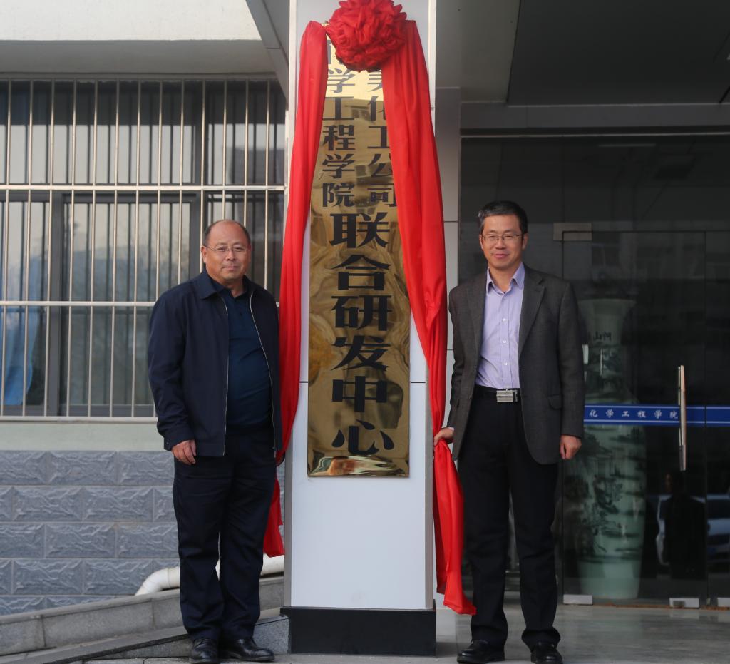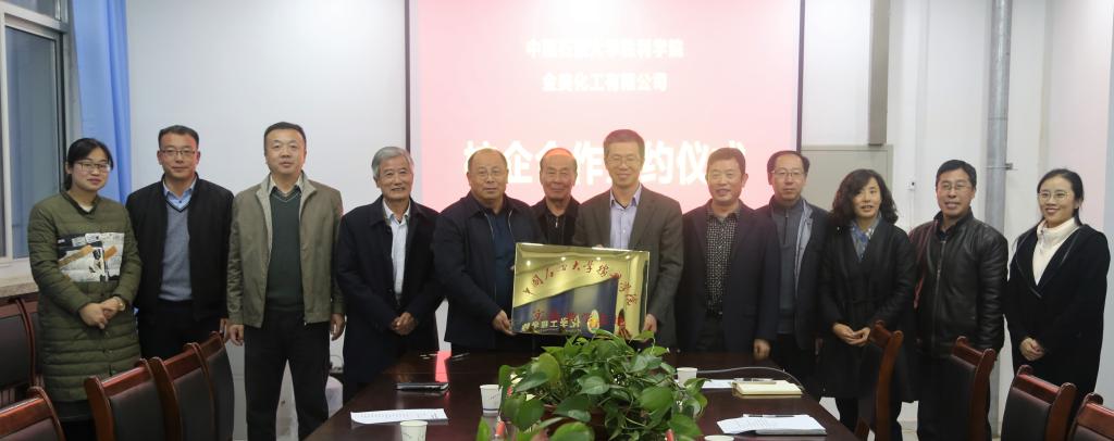随后,教学科研处处长杨树林与金美化工总经理纪洪涛代表双方进行了正式签约,赫正与王学会进行合作揭牌。