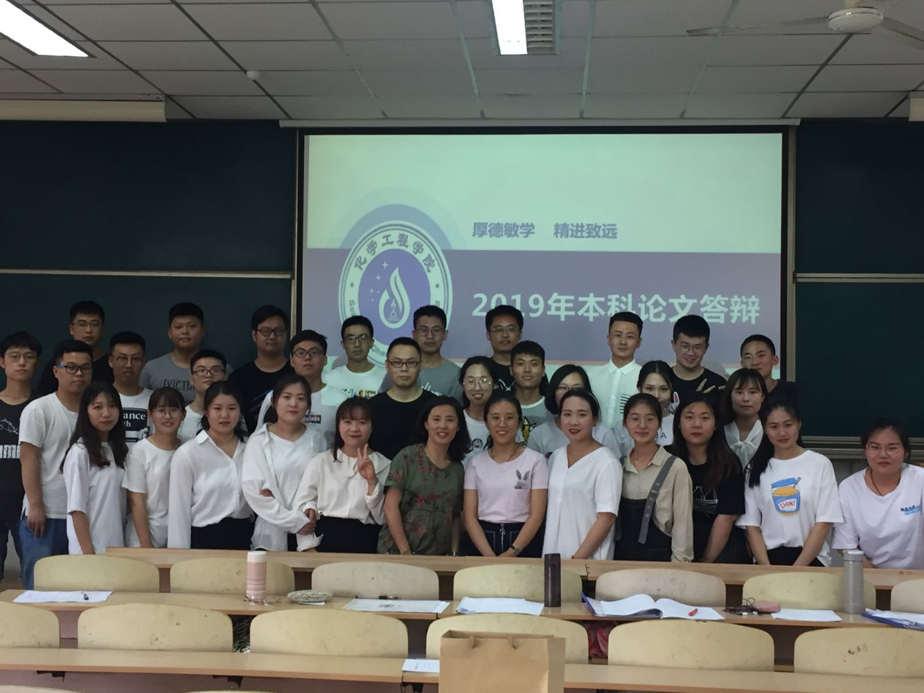 毕业论文答辩是一个增长知识,交流信息的过程,学生可以从答辩老师那里获得新的知识,答辩老师亦可以从见解独创的学生论文中得到启迪。同时,毕业论文答辩也是大学生全面展示自己的勇气、信心、才能、智慧、风度和口才的最佳时机。对于每一位毕业生来说,这不仅是一个对所学知识接受检验的机会,更是一个证明自我的平台,真诚祝愿应用化学系毕业生们走好以后人生的每一步。