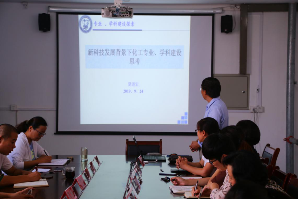 会议开始,我院院长夏道宏教授做了题为“新科技发展背景下化工专业、学科建设思考”的报告,从国内外新科技发展背景、化工新科技发展现状、我国领先的化工新科技和专业、学科建设思考四个方面进行了汇报,夏院长指出在新科技背景下我们的专业建设要坚持特色,融入变化,专业、学科要渐进调整,时刻关注国家产业动态、关注行业变化,做到“超前识变、积极应变、主动求变”,并就专业建设和学科建设要素做了阐述。为下一步学院的发展规划指明了方向。