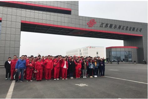 在解说员陈雪的带领下,我院师生一行走进盛虹石化集团下属的江苏斯尔邦石化有限公司,依次参观生产车间中控室、盛虹港储、码头等设施。在解说员的详细讲解下,学生对盛虹石化集团的企业生产流程、产品、生产规模等方面有了初步的了解,对企业文化和企业发展前景有了进一步的认识。