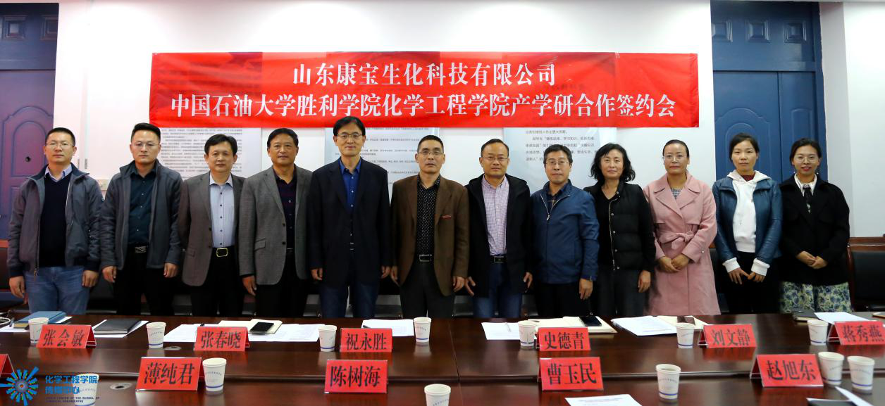 10月28日,我院与山东康宝生化科技有限公司产学研合作签约仪式在化工楼二楼会议室举行。利津县组织部副部长、编办主任曹玉民,利津县科技局副局长陈树海,利津县委编办副主任赵旭东,利津县委编办团支部书记薄纯君;山东康宝生化科技有限公司副总经理张玉龙,东营奇凡信息科技有限公司总经理赵鹏;中国石油大学胜利学院yl7703永利集团党总支书记祝永胜,副院长张春晓、史德青,化学工程系主任张会敏,环境工程系主任刘文静,永利集团办公室主任赵欣颖,应用化学系副主任蒋秀燕等出席本次签约仪式。