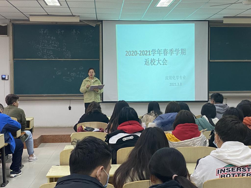 应用化学系副主任郑云香针对2017级应用化学专业毕业生进行了主题教育,要求大家大学最后一学期不要荒废时间,认真做好毕业设计和毕业论文。