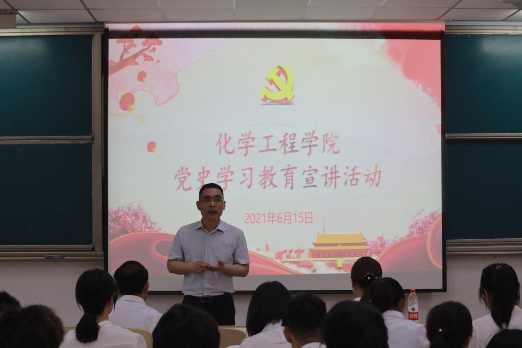 为深入开展党史学习教育,全面提高全院师生政治素质和党性修养,做到学史明智、学史增信、学史崇德、学史力行,6月15日下午,我院在第四教学楼4112教室举办第二场党史学习教育宣讲会,邀请学校党史学习教育宣讲团成员、图书馆馆长沙斌为全院师生讲授专题党史教育课。宣讲会由学院党总支书记祝永胜主持。