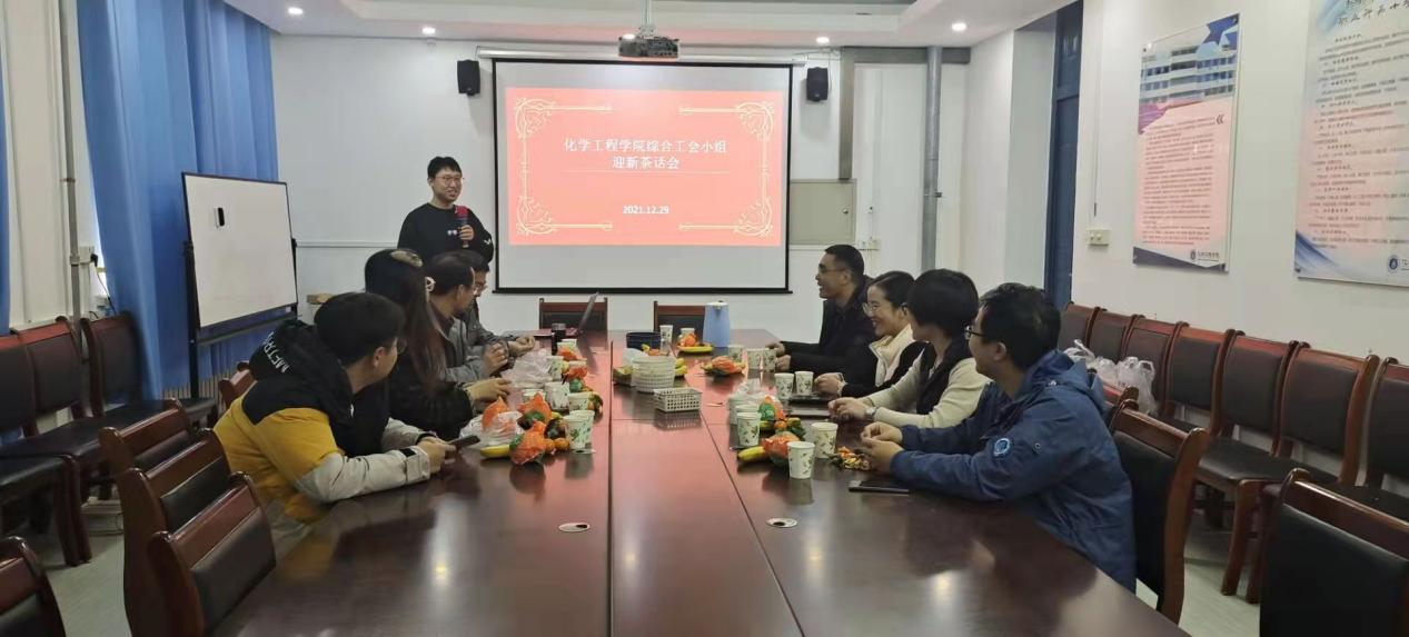 化工系工会小组迎新茶话会在我院308室举行,老师们畅聊自己2021年生活和工作情况和对未来的畅享,史德青副院长等表演了小节目,在欢声笑语中,祝永胜书记又组织大家进行了祝酒令游戏,时时刻刻都洋溢出新年的欢乐气氛。