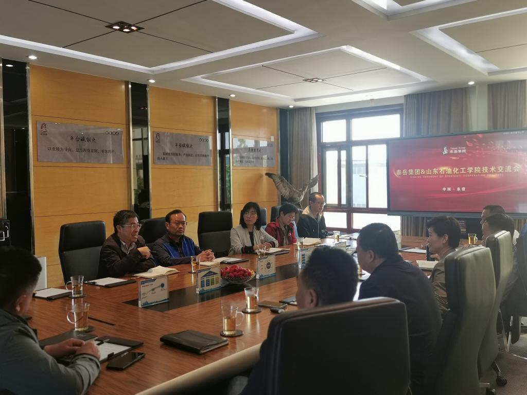 参观结束后,学校教师与泰岳集团领导进行了交流洽谈。岳曰安介绍了集团的基本情况,表达了与我校进行合作的迫切愿望;张春晓介绍了学院的基本情况,希望积极参与校企合作并服务地方发展。之后,双方就污水处理的提质增效、油污染土壤的生态修复、钻井泥浆的无害化利用、东营市区内三条景观河流治理、农田灌溉水碳减排、人工湿地治理等多个问题集中进行了交流、探讨。双方还就人才联合培养、教师参与企业环境保护研究院的工作等交换了意见,并达成了初步共识,希望双方开展全面战略合作,建立长期交流机制,实现互惠共赢,为学校和企业的发展作出更大贡献。