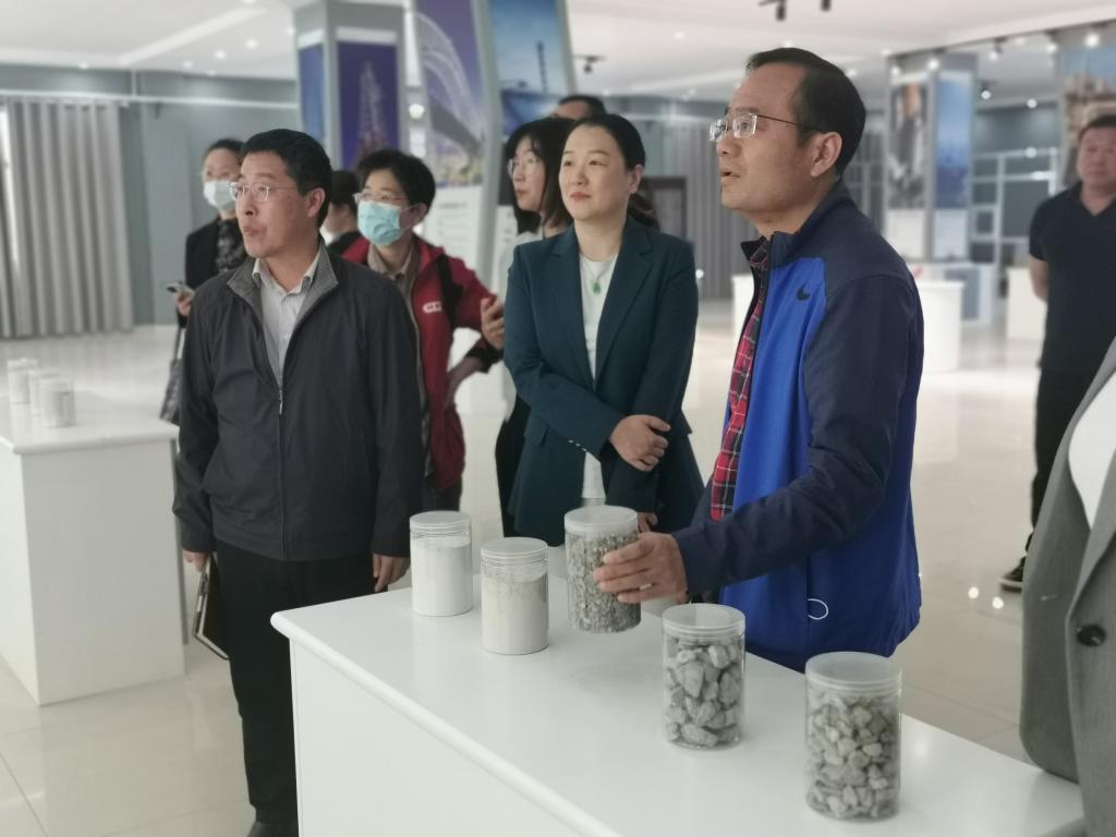 交流会谈前,学院一行参观了集团下属的山东亿源环境工程有限公司和山东唯一晟源新材料科技有限公司的展厅和生产车间,泰岳集团环境工程板块总经理盖振芳介绍了公司在水处理剂、盐碱土壤修护技术和水性漆产品等领域的发展情况。