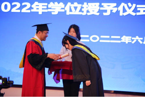 学位授予仪式上,副院长张春晓博士和史德青博士分别为2022届毕业生扶正流苏,授予学士学位并合影留念,向每一位即将走向新征程的毕业生送上最美好的祝愿。