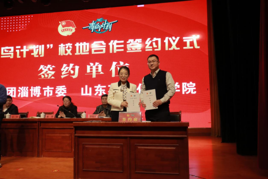 23日下午,欢迎仪式在临淄齐文化博物馆学术报告厅举行。学校团委与淄博团市委签订“青鸟计划”校地合作协议。
