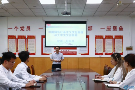 为深入开展学习贯彻习近平新时代中国特色社会主义思想主题教育,落实党的二十大精神,提升大学生文化自信,yl7703永利集团于6月14日下午在勘探馆4030党员活动室组织“中国特色社会主义文化自信与大学生文化修养”党课宣讲,我院党总支书记祝永胜担任主讲人,我院40名学生党员及入党积极分子参加本次党课学习。