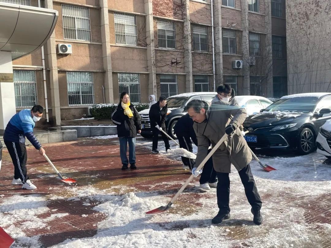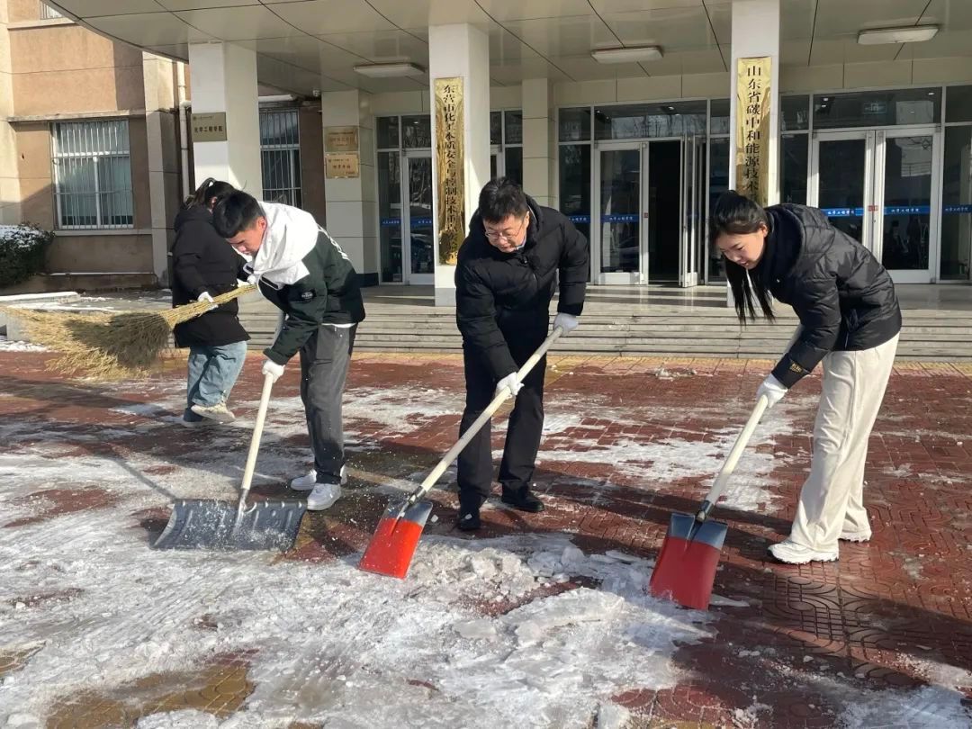 近日,受寒潮天气影响,东营迎来大范围降雪。为及时清理积雪,保障师生及车辆通行安全,学院师生党员自发组织了一场志愿扫雪活动。