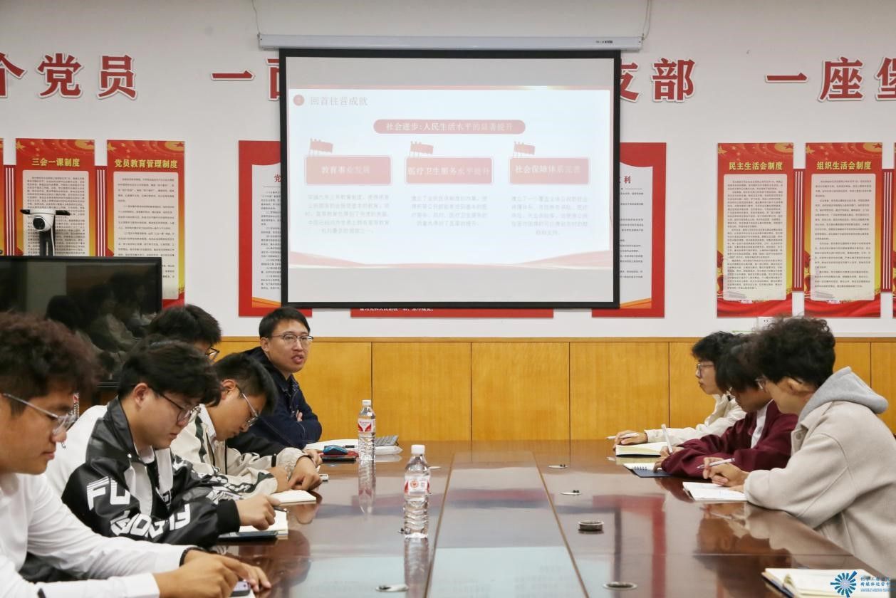 活动现场,气氛热烈而庄重。王子松老师首先带领大家回顾了祖国一路走来的辉煌历程,从新中国成立初期的艰苦创业,到如今在科技、经济、文化等各个领域的卓越成就,每一个历史瞬间都让人心潮澎湃。大家深刻地认识到,祖国的繁荣富强离不开每一位中华儿女的奋斗与奉献。团员们纷纷分享自己与祖国共成长的故事。有的讲述了自己在祖国的培养下,从懵懂少年成长为有理想、有担当的青年的历程;有的分享了自己参与志愿服务,为祖国和人民贡献力量的经历;还有的表达了对祖国未来发展的坚定信心和美好憧憬。这些故事充满了青春的活力与激情,展现了新时代青年的责任与担当。随后,全院各级各班团支书在班内开展主题团日活动。