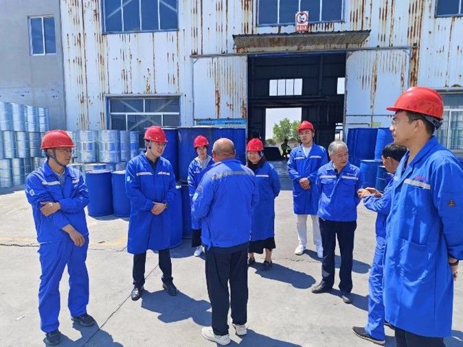 在金美化工有限公司厂区驻地,王学会董事长带领师生参观了生产车间、控制机房、消防设施等,他介绍到,金美化工是一家集科研、生产、销售、服务于一体的综合性化工有限公司,主要是精细化学品的生产销售,年生产能力30000余吨,有着良好的发展前景。