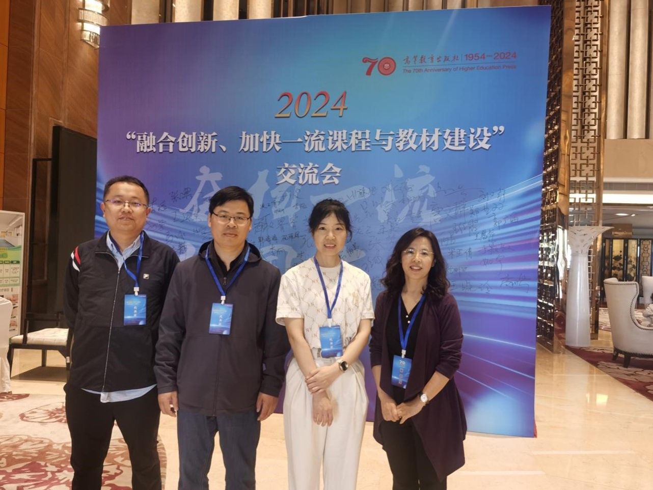 为贯彻2024年全国教育工作会议精神,深入推进教育数字化战略行动,推动高等学校高质量课程教材体系建设,2024年4月21日,yl7703永利集团副院长刘文静、系主任王卫、骨干教师于颖敏、张鹏图赴淄博参加“融合创新、加快一流课程与教材建设”交流会。此次会议由高等教育出版社主办,山东理工大学、高等教育出版社共同承办。会议主要包含基础学科教学改革与高质量人才培养、新工科建设进展与卓越人才培养、虚拟教研室-课程思政的教学改革与实践以及信息技术与课程教材深度融合的创新与应用四个议题。