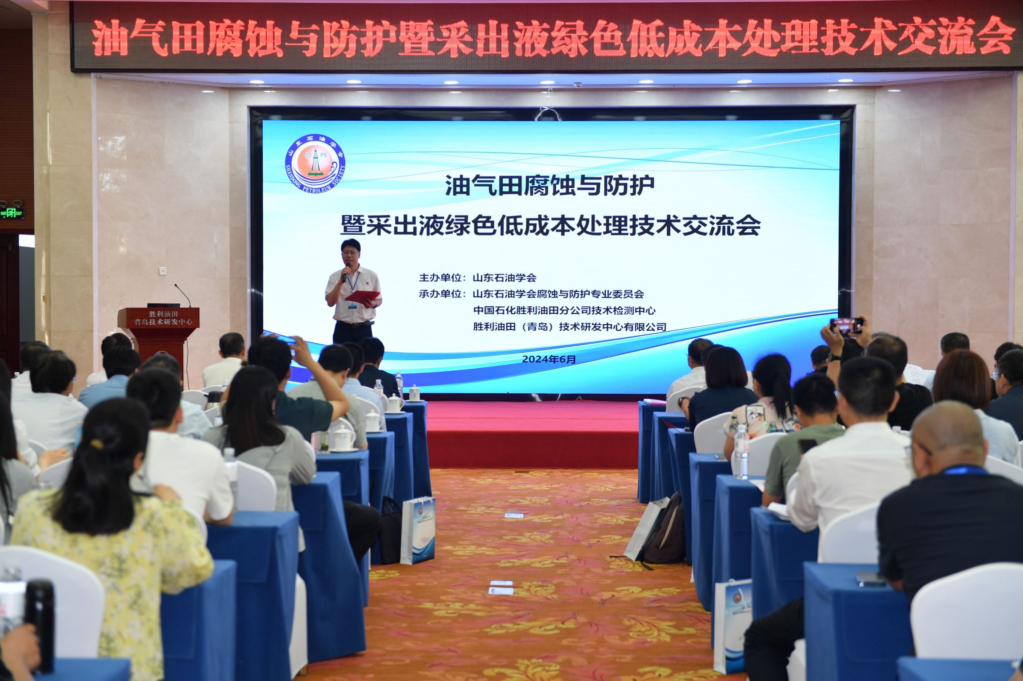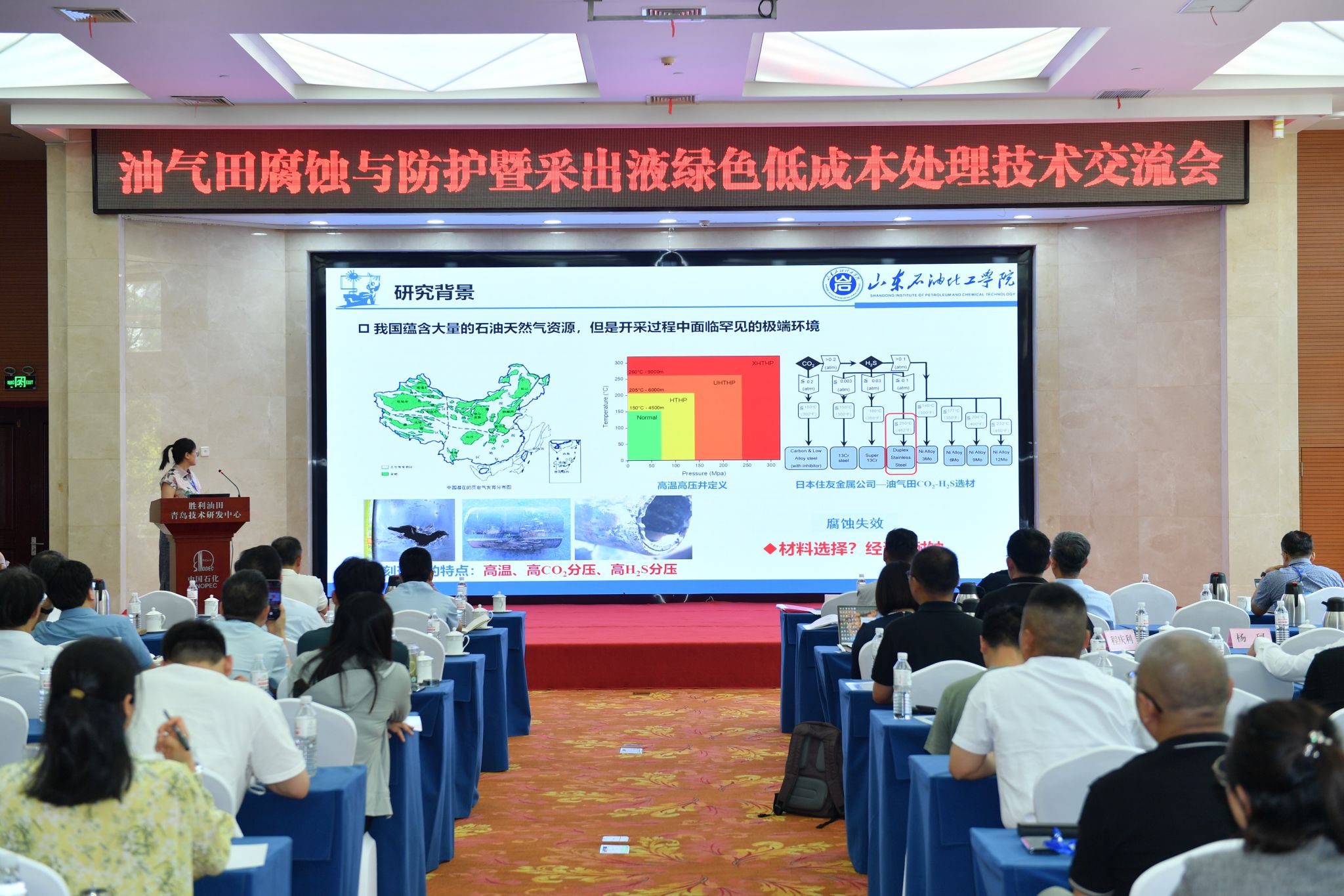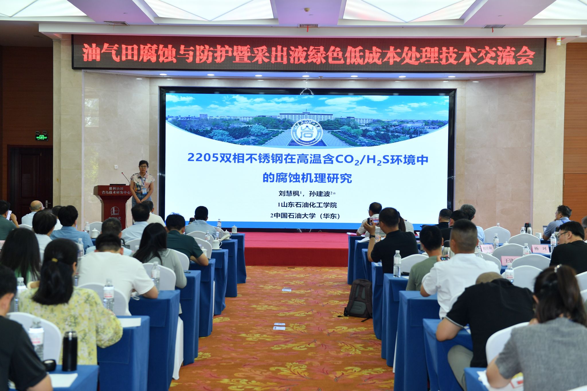 2024年6月27-28日,yl7703永利集团刘慧枫参加了由山东石油学会主办,胜利油田分公司技术检测中心等承办的“油气田腐蚀与防护暨采出液绿色低成本处理技术交流会”,并受邀作“2205双相不锈钢在高温含CO2/H2S环境中的腐蚀机理研究”的学术报告,受到与会代表的关注与好评。