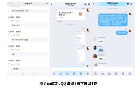 在每周上课前一天我通过QQ群告知学生上课时间及教学平台,督促学生在规定时间内签到学习。QQ群中除了下达相关教学通知外,还不定期分享与物理化学相关、与实际生活贴近、生动、形象的网络视频供学生观看,以此来拓宽学生的学习渠道,开阔学生的视野,做到勤学多思,提升学生对《物理化学》课程的学习兴趣。