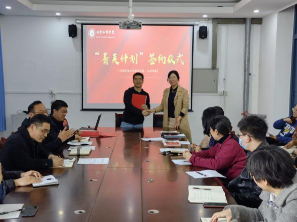 仪式伊始,张春晓院长传达了学校“菁英计划”工作具体安排,并对2020-2021学年新入职青年教师作了简要介绍。随后,在全院教师的共同见证下,由“菁英计划”4位指导教师与4位青年教师分别签订了《中国石油大学胜利学院“菁英计划”导师责任书》。
